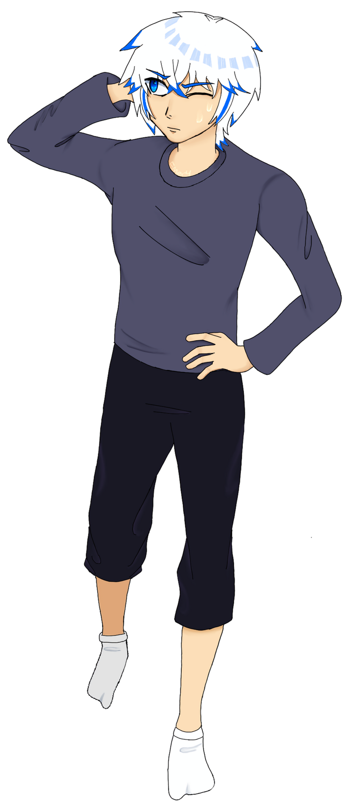 Amari has dark purple hair stripes and eye color. Unlike Amaris, Amari's color does not change. Amari likes to style his clothes by similar color schemes that fit his hair color. His clothing design is simple for now. Throughout his journey, his sense of fashion becomes better. Amari's color represents mixed feelings.